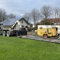 Sigge Fritzen rückte mit schwerem Gerät an und unter hohem Druck wurde das ca. 1500 Meter lange Leitungssystem leer geblasen.